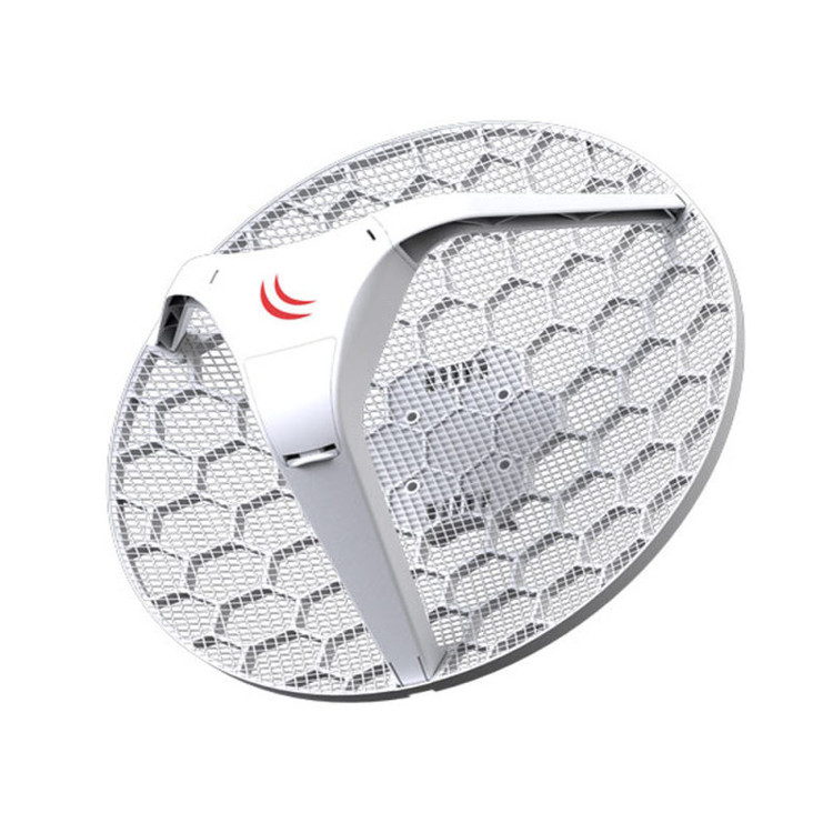 محصول Mikrotik RBLHG-5nD LHG 5 از تجهیزات میکروتیک یک دستگاه وایرلس با قابلیت Access Point برای مراکز اداری کوچک است که از نسل جدید پردازنده Atheros پردازنده: AR9344 با قدرت بیشتر و رم 64 مگابایت طراحی شده است. این آنتن اکسس پوینت با مدل آنتن خارجیOutdoor 24.5dbi که از استاندارد IEEE 802.11a و IEEE 802.11n پشتیبانی می کند را دارا می باشد. همچنین این دستگاه مناسب برای لینکهای PtP و استیشن می باشد. شایان به ذکر است که سرعت انتقال این دستگاه 5GHz-54MBit/s-20dBm و که می تواند به دیگر اکسس پوینت ها متصل گردد. حداکثر جریان بار برروی این پورت 500mA می باشد. رادیو وایرلس میکروتیک LHG 5 یک دستگاه وایرلس کوچک و سبک 5 گیگاهرتزی با استاندارد 802.11a/n و یک آنتن توری دو قطبی (dual polarization 24.5 dBi) یکپارچه با قیمت بسیار مناسبی می باشد. این رادیو برای اتصال های point to point یا برای استفاده به عنوان CPE در مسافت های طولانی ایده آل است و از پروتکل NV2 TDMA پشتیبانی می کند. طراحی توری این رادیو وایرلس محافظت در برابر باد را تضمین می کند. این دستگاه باتوجه به حجم مناسبش حمل آسانی دارد و شامل یک نقطه برای اتصال به زمین برای استفاده مناسب است. همچنین در بسته بندی این رادیو یک آداپتور کوچک برای تغییر جهت آنتن به پنج درجه نسبت به موقعیت اصلی آن قرار دارد.